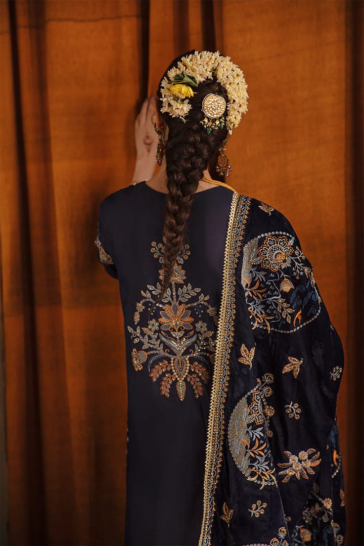 •  Embroidered Velvet Front + Back + Sleeves Borders (3 Meters)
