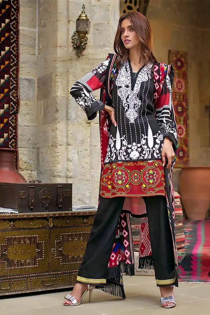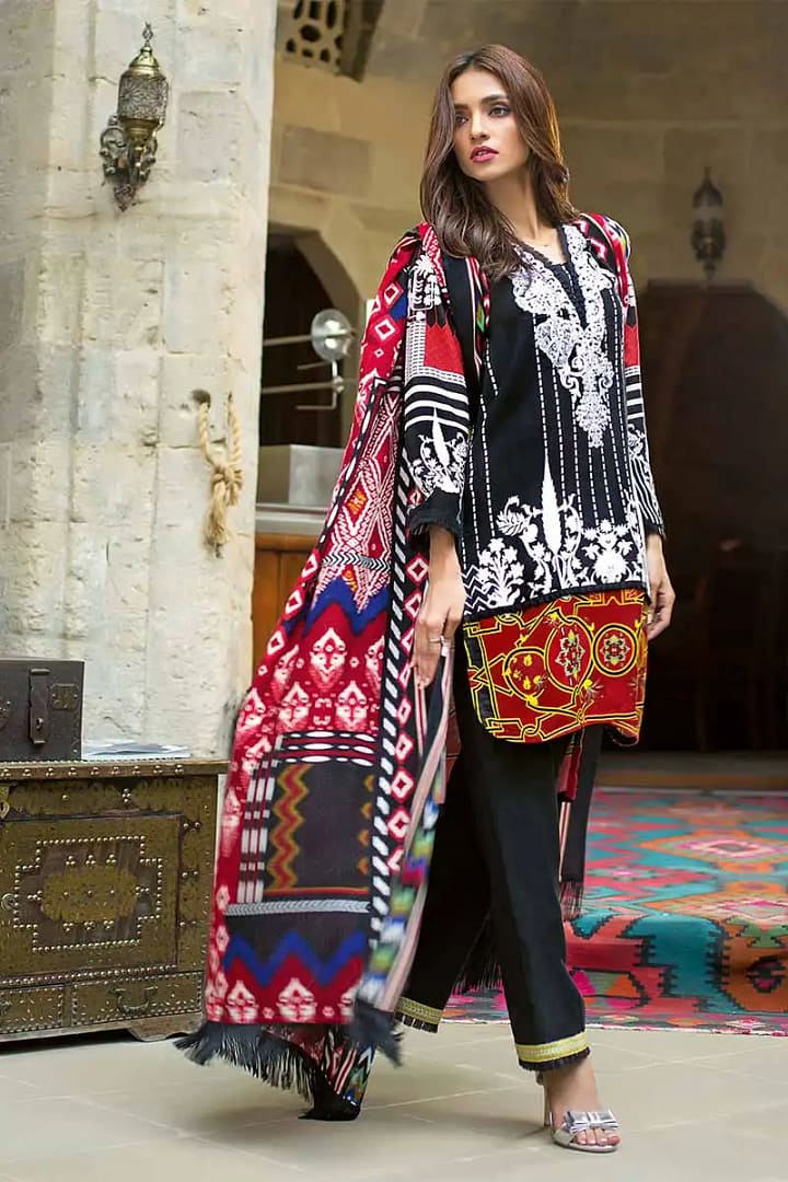 Gul Ahmed 3PC Unstitched Embroidered Viscose Suit with Printed Woolen Dupatta AP-11