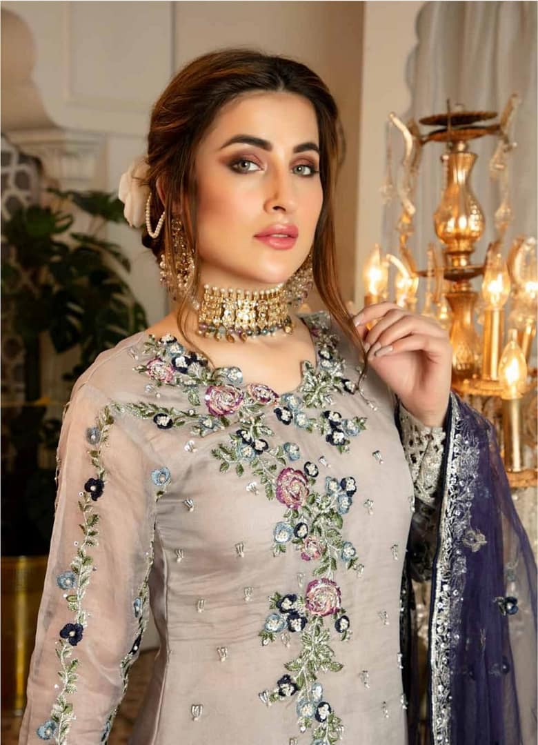 • Pure Organza Embroidered With Hand Embellishments