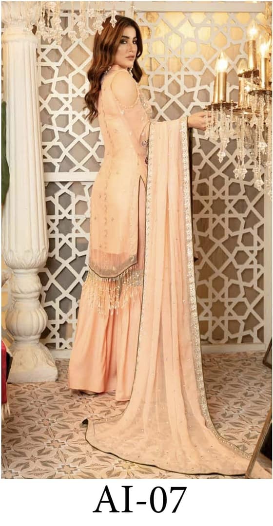 Be the first to review “Isleen AI 07 Unstitched Embroidered Pure Chiffon With Hand Embellishments”