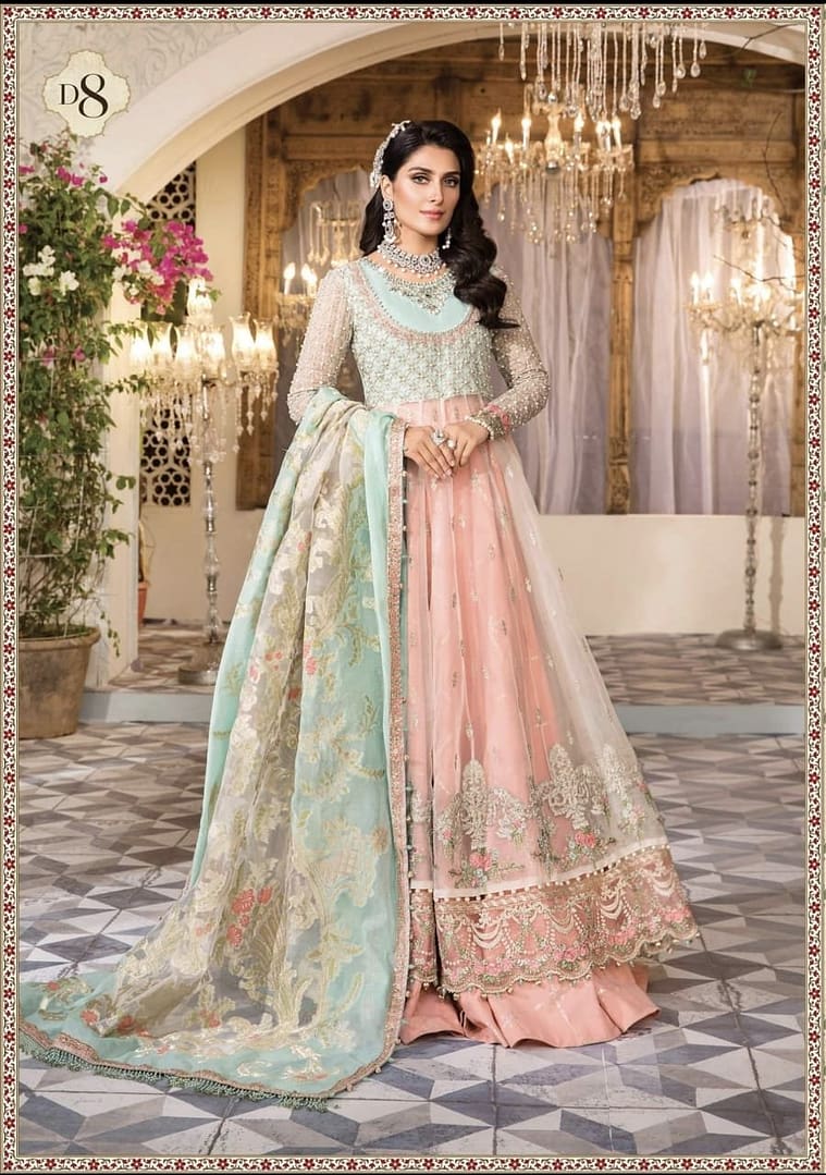 Maria B. Unstitched MBROIDERED – Pearl White, Peach & Aqua (BD-2408)
