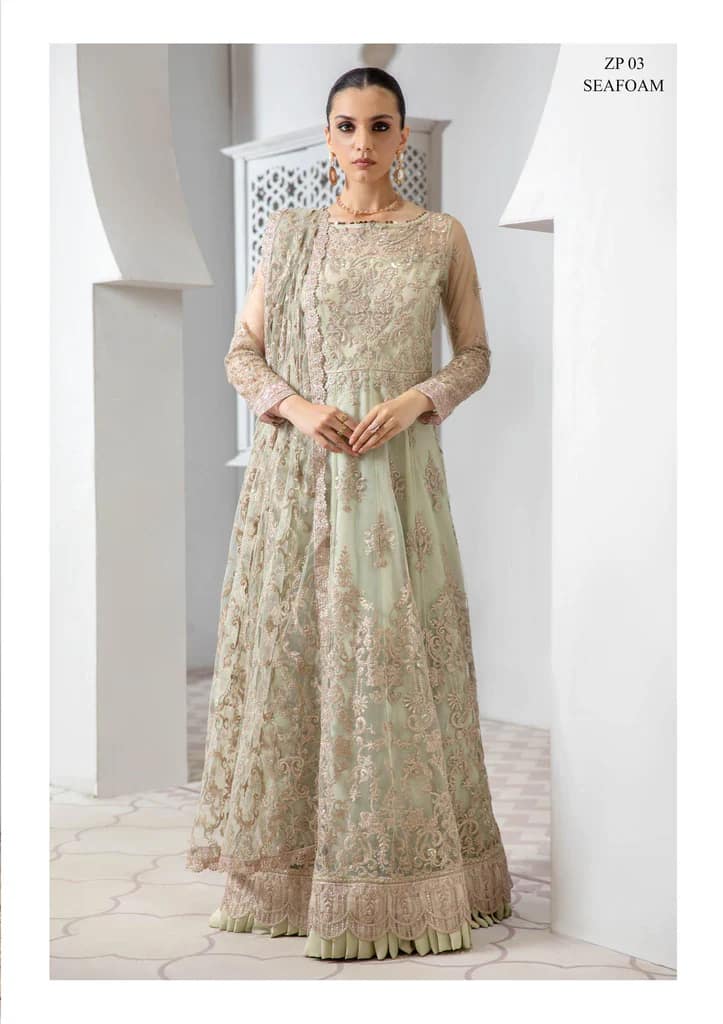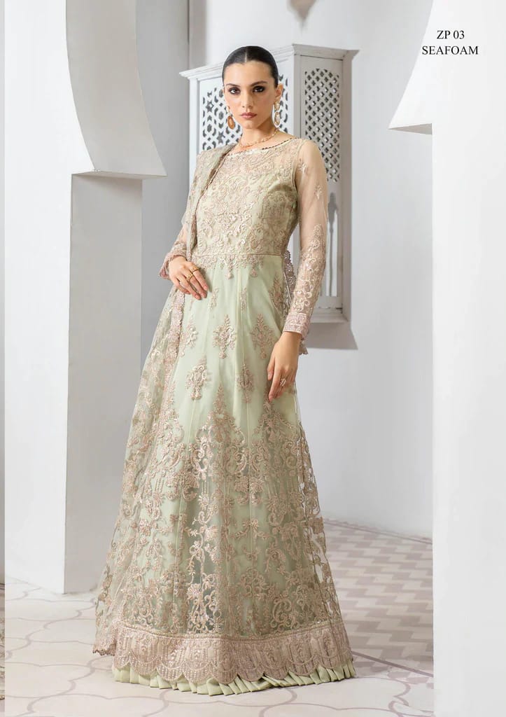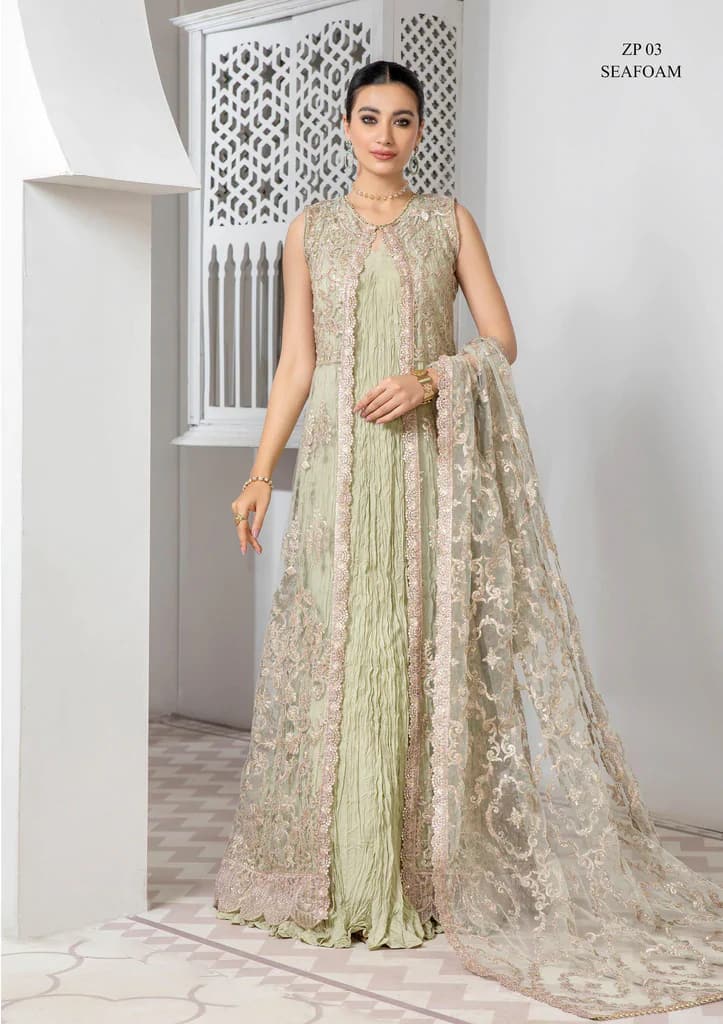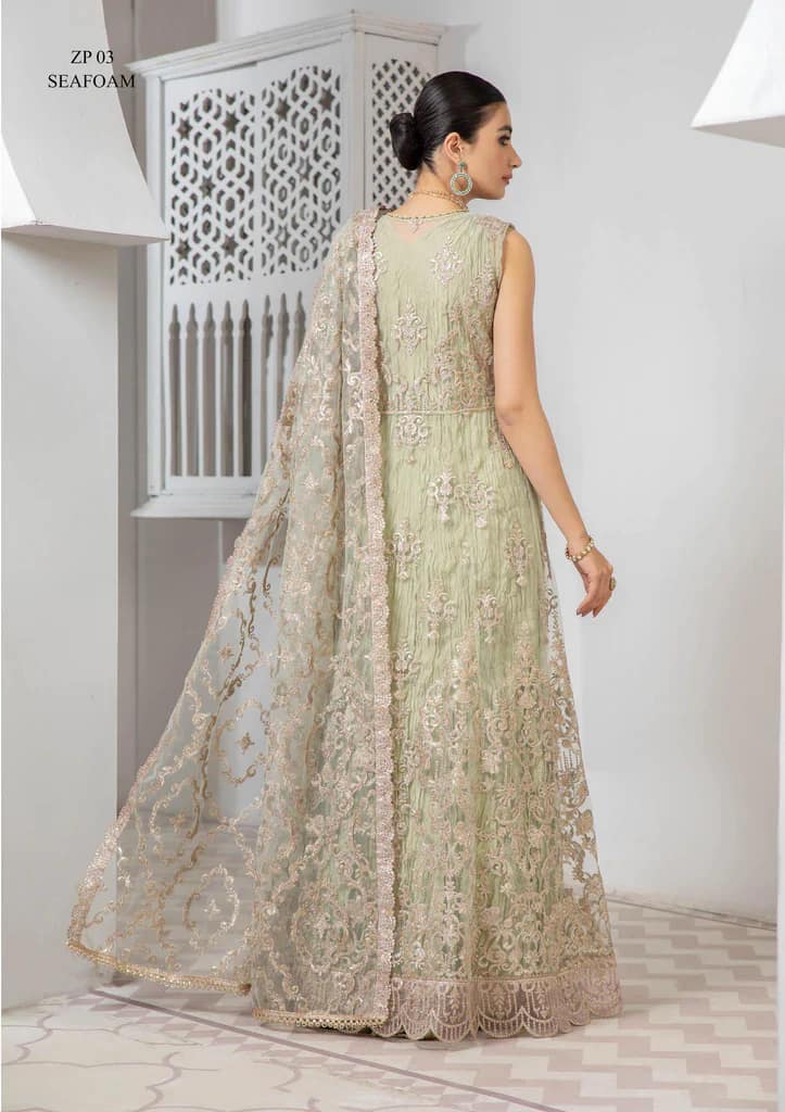Pareesia by Zarif Unstitched Luxury Formal Net 3Pc Suit ZP-03 Seafoam