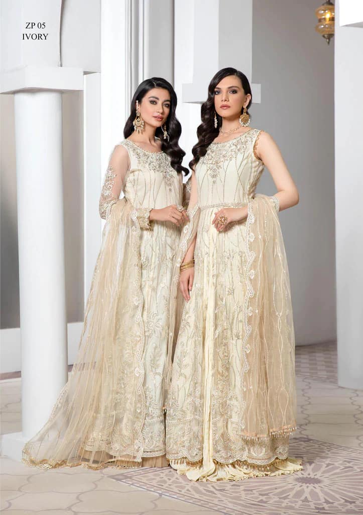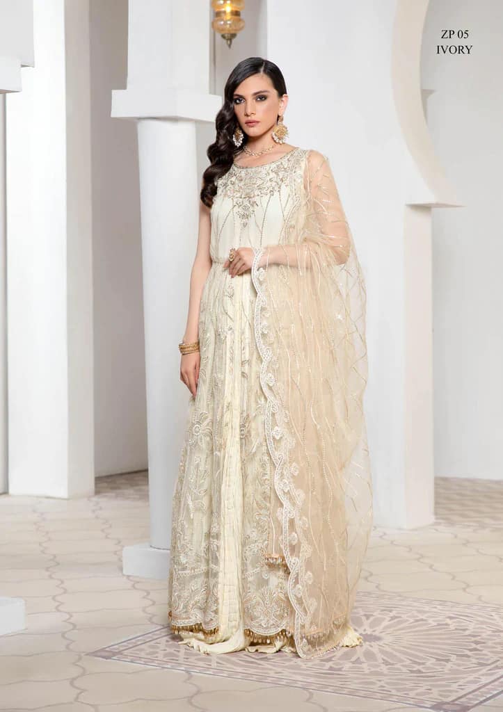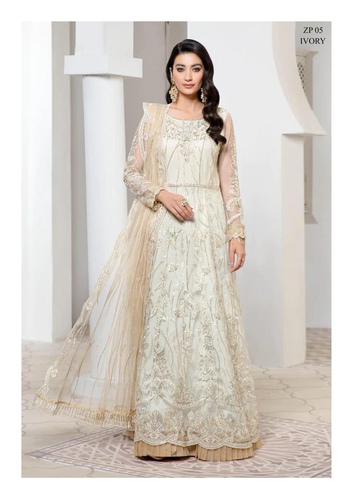 Pareesia by Zarif Unstitched Luxury Formal Net 3Pc Suit ZP-05 Ivory