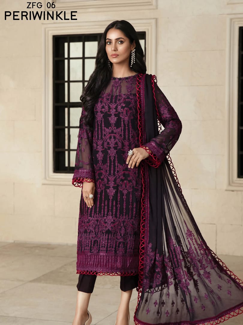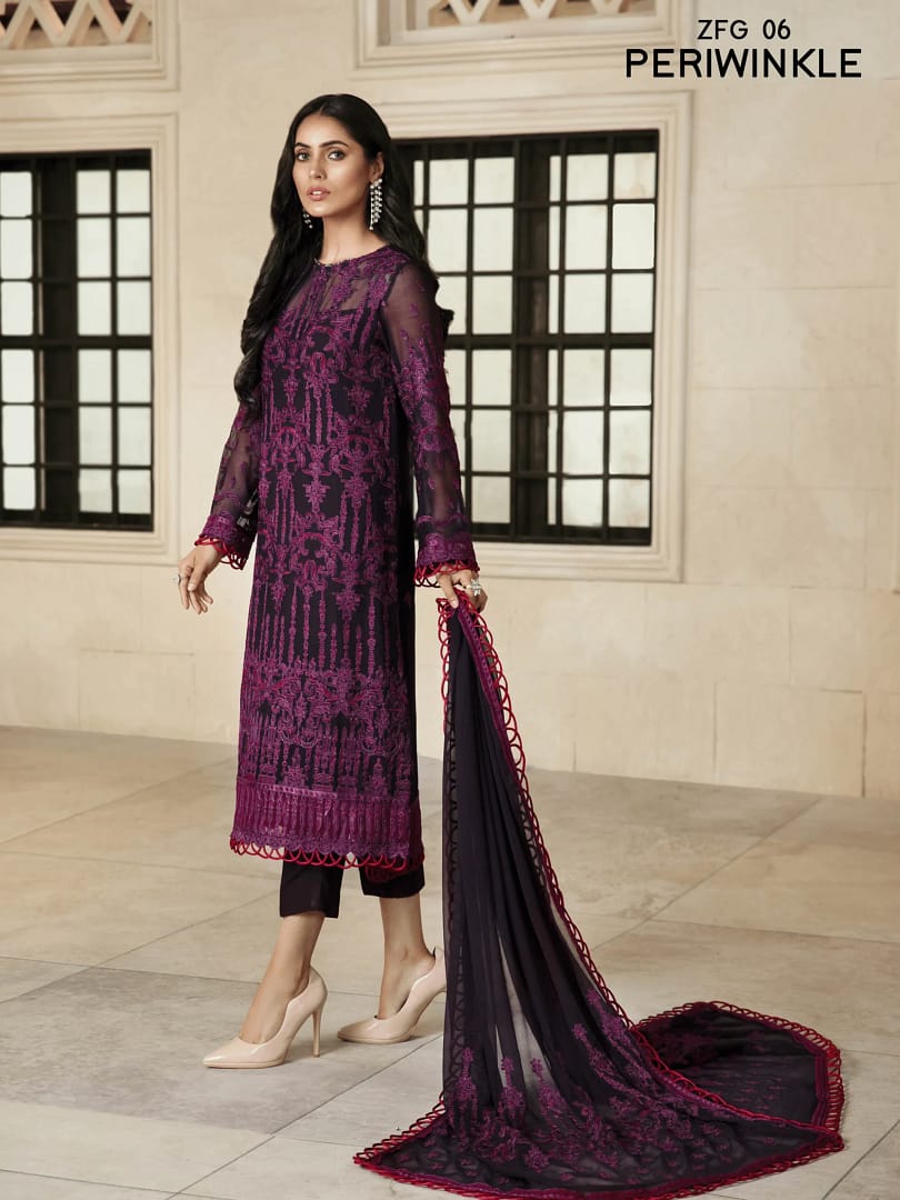 Be the first to review “Zarif Gulzaar Festive Chiffon Unstitched 3Pc Suit ZFG-06 Periwinkle”
